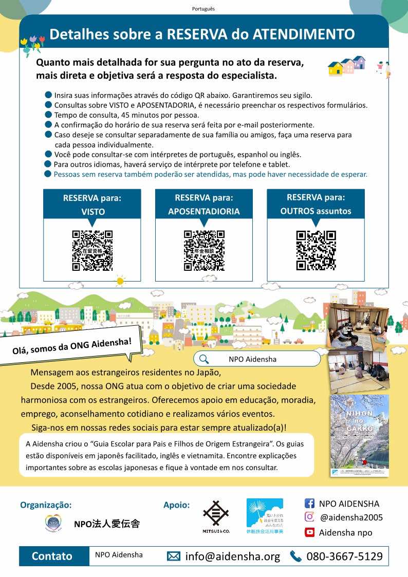 Especialistas em diversos assuntos como área educacional no Japão, desenvolvimento infantil, orientação psicológica, vistos, normas trabalhistas e aposentadoria, entre outros assuntos, estarão disponíveis para consultas gratuitas no evento.