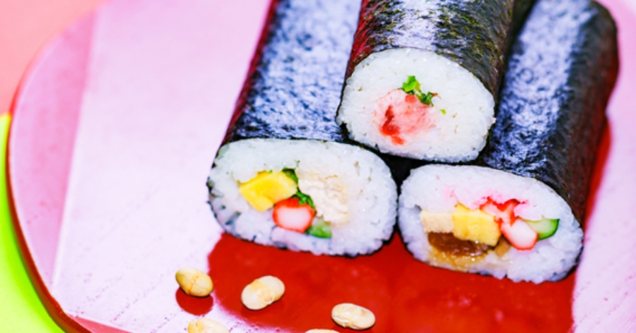 Inspirou-se no ehomaki, um tipo de rolinho de sushi, mais grosso, que traz boa sorte. Basta olhar para a “direção da sorte” do ano e pensar em um desejo enquanto o come.
