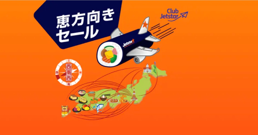 Capa da promoção da LCC Jetstar tem um avião em formato de ‘ehomaki’ (reprodução)