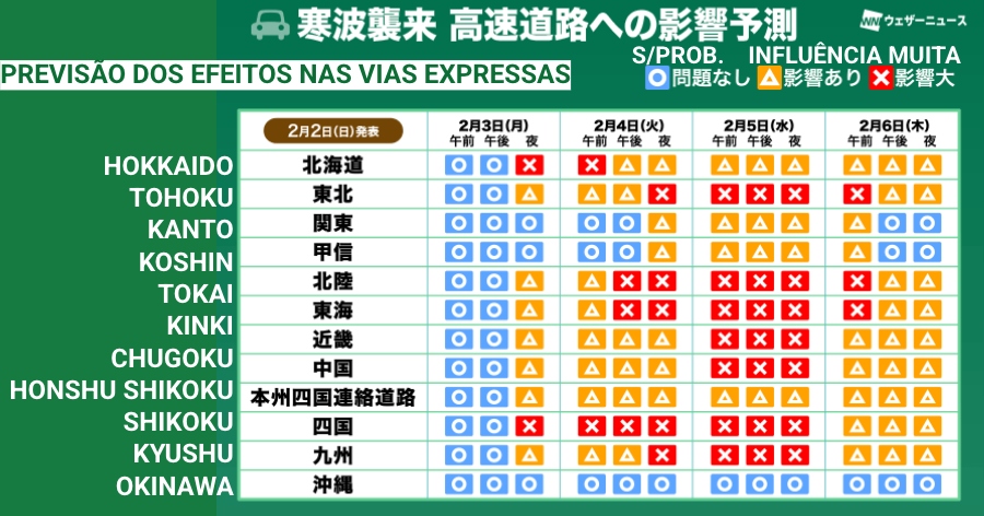 Efeito da neve nas vias expressas, por região (WeatherNews)