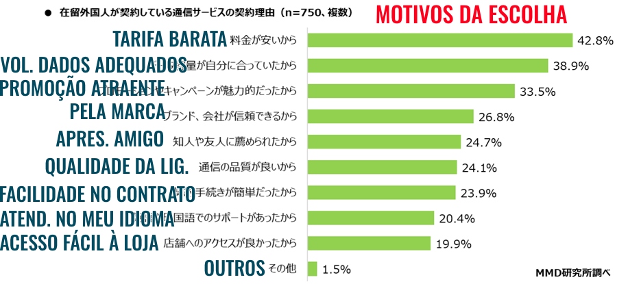 A empresa MMDLabo, de Tóquio, realizou uma pesquisa entre os residentes estrangeiros para saber quais são as operadoras de telefone celular escolhidas.