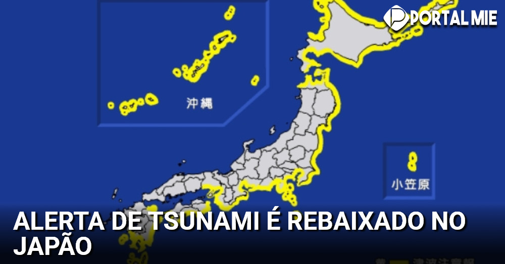 Alertas de tsunami no Japão foram rebaixados, mas o governo pede que a população em todo o país exerça cautela, visto que “aviso” (áreas em amarelo) continuam em vigor de Hokkaido a Okinawa