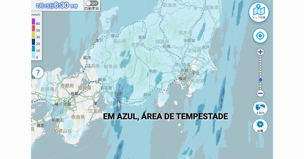 A Agência de Meteorologia do Japão (AMJ) anunciou, na segunda-feira, a formação de uma faixa de precipitação linear na região Tokai: Mie, Gifu, Aichi e Shizuoka. Quando ocorre esse fenômeno os riscos de desastre causados pela chuva forte aumentam rapidamente.