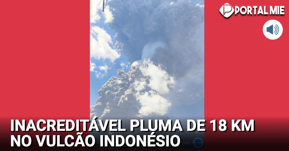 Vulcão na Indonésia em erupção pliniana e lança pluma vulcânica de 18 quilômetros