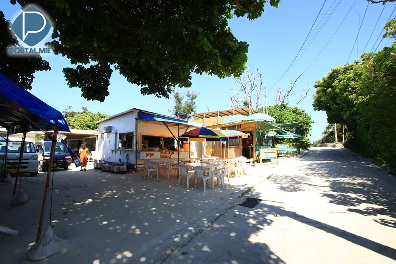 Locais que vendem comida e bebida em Minna-jima estão abertos no verão, mas são poucos, embora máquinas de venda automática possam ser encontradas na ilha (PM)