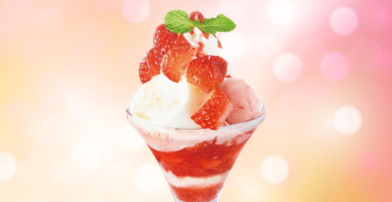 O festival de sobremesas de morango na rede Denny’s começou na terça-feira (13). São diversas, a começar pelo sofisticado sundae de morangos especiais Amaou, de Fukuoka. São 10 unidades desses morangos especiais para o cliente se esbaldar. O preço é de 1.942 ienes com imposto e é servido somente das 15 às 23 horas.