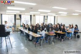 Agustin ensinou várias técnicas de maquiagem e palestrou sobre o mercado de trabalho e o desenvolvimento profissional.