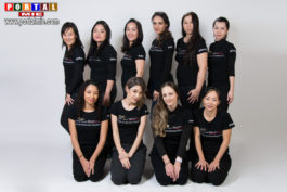 Esta foi a última etapa e a mais importante do curso profissional. Evelyn Saito e suas assistentes Dani e Cenir supervisionaram a prova e orientaram as alunas durante a produção das noivas.