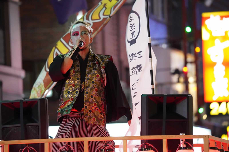 Tomohiko Rei: A fusão do berimbau da capoeira com o funk, na verdade, se encaixa bem no estilo popular atual de funk e não foi particularmente desafiadora. Por outro lado, misturar elementos da cultura japonesa, como tambores taiko, kabuki, dança bonodori e piano, com o funk representou um desafio maior. No entanto, eu estava determinado a encontrar meu próprio estilo, então acreditei que poderia combinar bonodori e funk, por exemplo.